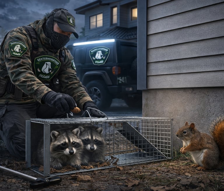 Nous intervenons avec discrétion et professionnalisme pour capturer les animaux qui causent des nuisances sur votre terrain ou à l'intérieur de vos murs. Nos techniques sont conformes aux normes environnementales et visent le bien-être de l'animal tout en assurant votre sécurité.